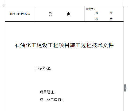 3543-2007石油化工建設(shè)工程項(xiàng)目施工過(guò)程技術(shù)文件全套表格
